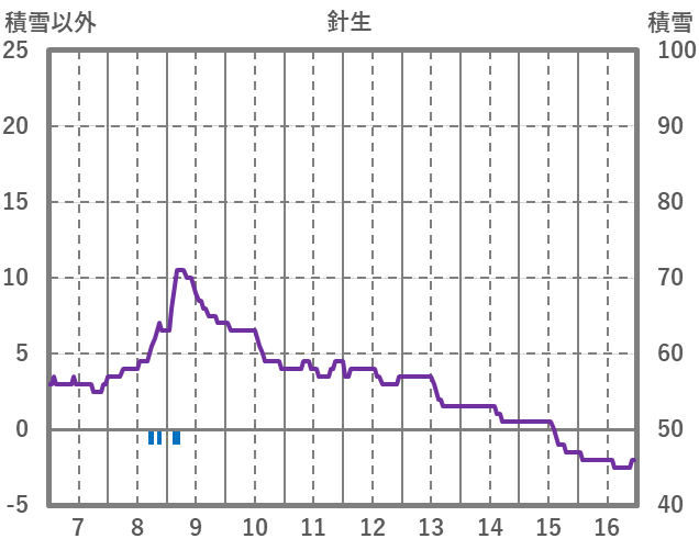 | 日 | 時 | 気温 | 降水 | 風向/風速 | 日照 | 積雪 | 降雪 |