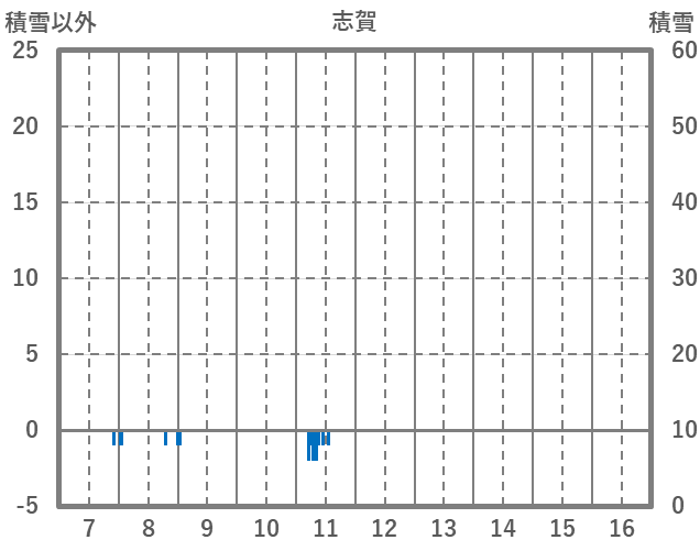 | 日 | 時 | 気温 | 降水 | 風向/風速 | 日照 | 積雪 | 降雪 |