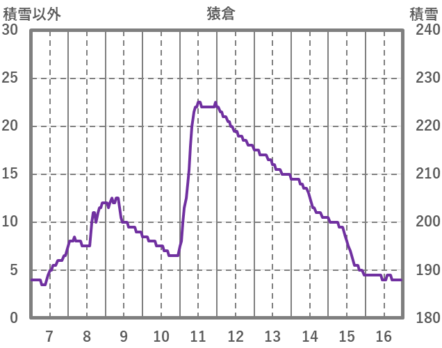 | 日 | 時 | 気温 | 降水 | 風向/風速 | 日照 | 積雪 | 降雪 |