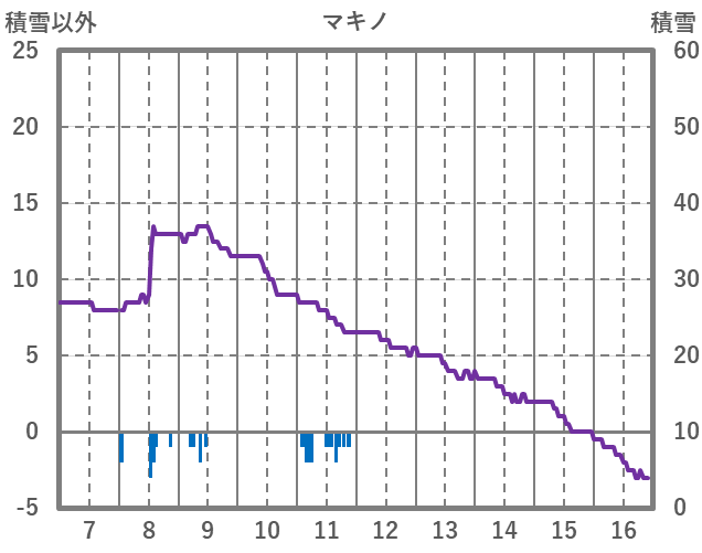 | 日 | 時 | 気温 | 降水 | 風向/風速 | 日照 | 積雪 | 降雪 |