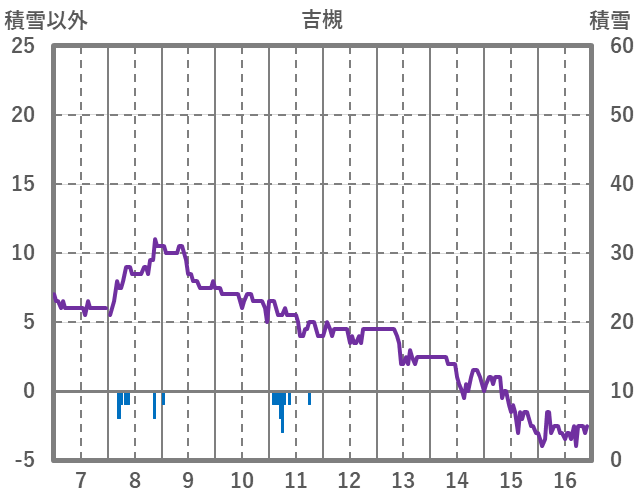 | 日 | 時 | 気温 | 降水 | 風向/風速 | 日照 | 積雪 | 降雪 |