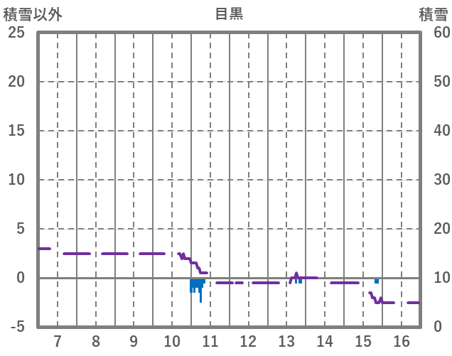 | 日 | 時 | 気温 | 降水 | 風向/風速 | 日照 | 積雪 | 降雪 |
