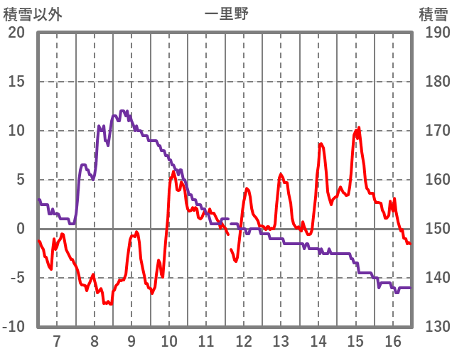 | 日 | 時 | 気温 | 降水 | 風向/風速 | 日照 | 積雪 | 降雪 |