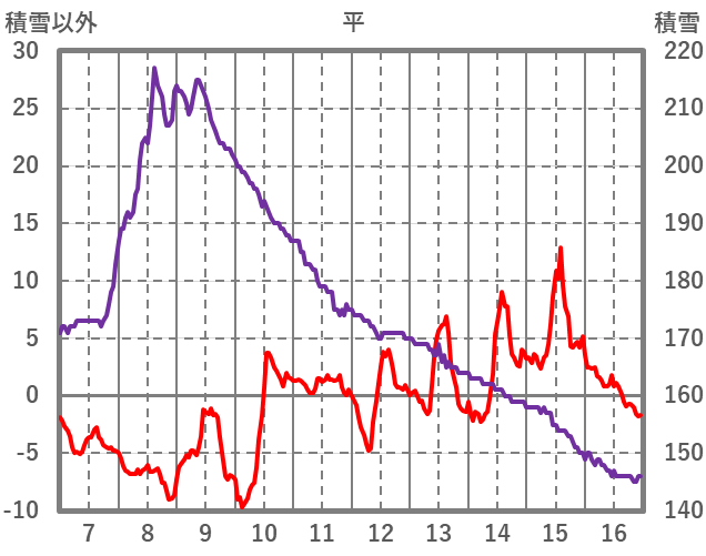 | 日 | 時 | 気温 | 降水 | 風向/風速 | 日照 | 積雪 | 降雪 |