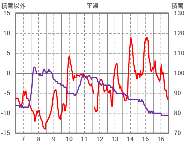 | 日 | 時 | 気温 | 降水 | 風向/風速 | 日照 | 積雪 | 降雪 |