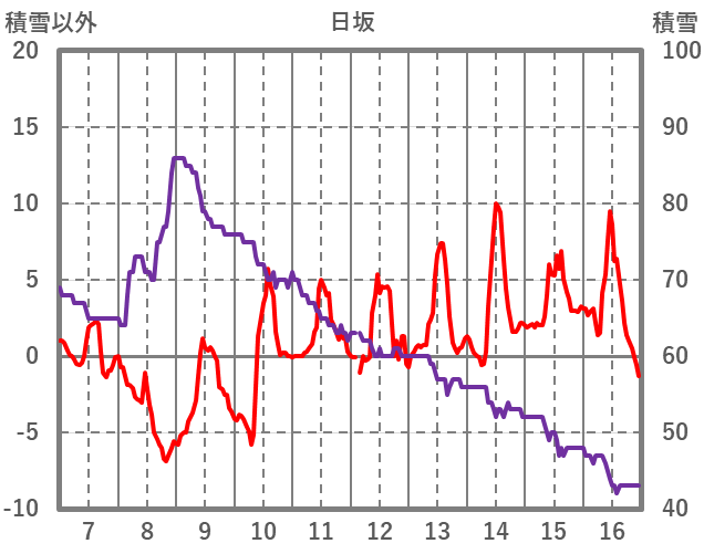 | 日 | 時 | 気温 | 降水 | 風向/風速 | 日照 | 積雪 | 降雪 |