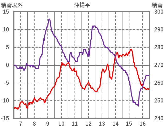| 日 | 時 | 気温 | 降水 | 風向/風速 | 日照 | 積雪 | 降雪 |