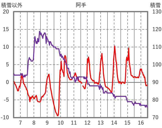 | 日 | 時 | 気温 | 降水 | 風向/風速 | 日照 | 積雪 | 降雪 |