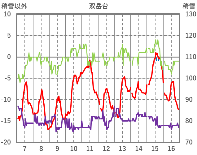 | 日 | 時 | 気温 | 降水 | 風向/風速 | 日照 | 積雪 | 降雪 |