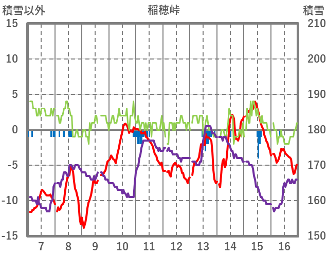 | 日 | 時 | 気温 | 降水 | 風向/風速 | 日照 | 積雪 | 降雪 |