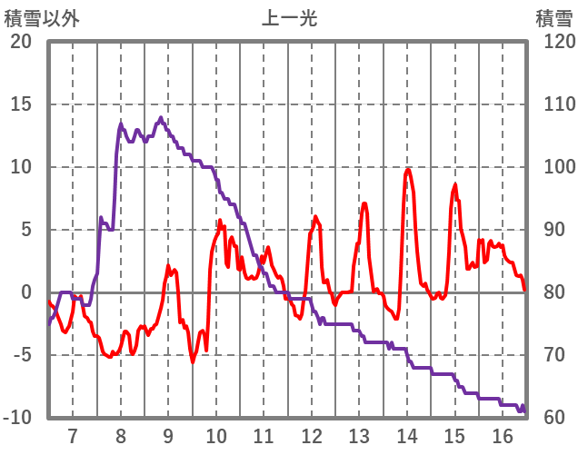 | 日 | 時 | 気温 | 降水 | 風向/風速 | 日照 | 積雪 | 降雪 |