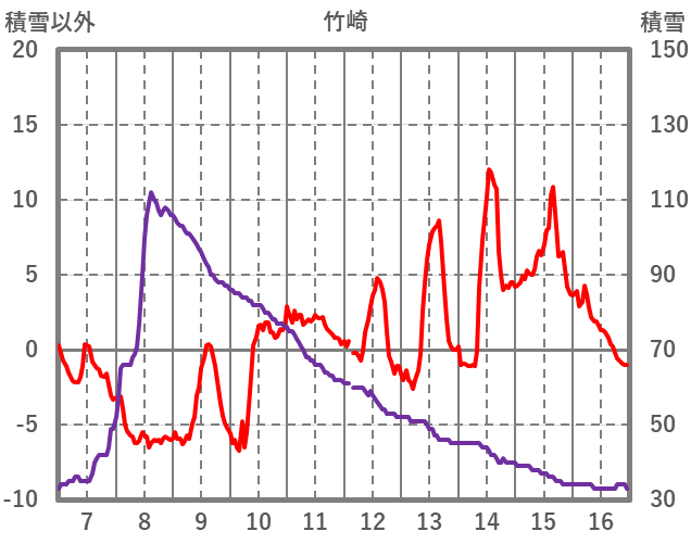 | 日 | 時 | 気温 | 降水 | 風向/風速 | 日照 | 積雪 | 降雪 |