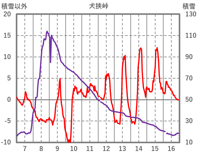| 日 | 時 | 気温 | 降水 | 風向/風速 | 日照 | 積雪 | 降雪 |