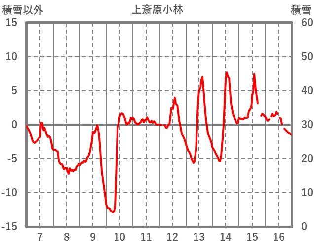 | 日 | 時 | 気温 | 降水 | 風向/風速 | 日照 | 積雪 | 降雪 |