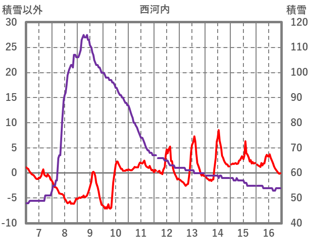 | 日 | 時 | 気温 | 降水 | 風向/風速 | 日照 | 積雪 | 降雪 |