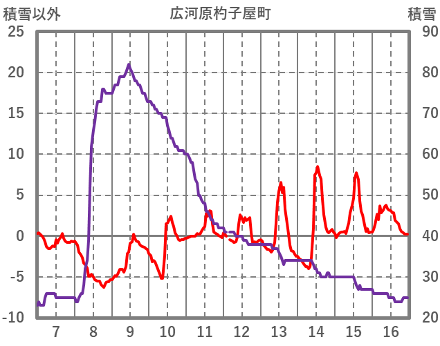 | 日 | 時 | 気温 | 降水 | 風向/風速 | 日照 | 積雪 | 降雪 |