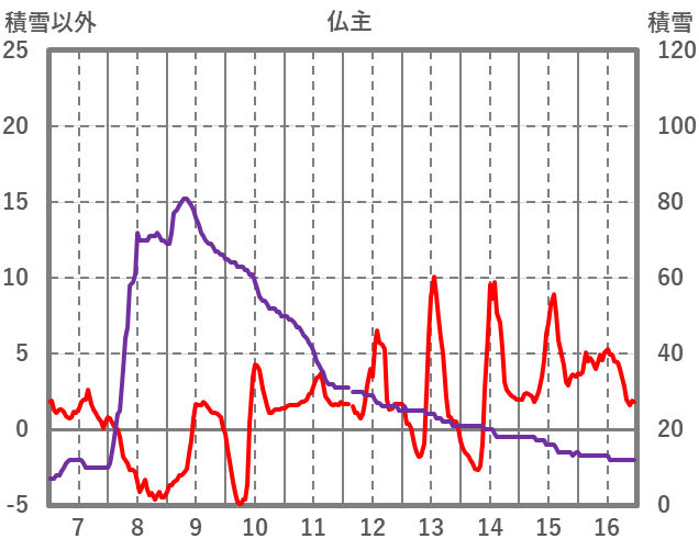| 日 | 時 | 気温 | 降水 | 風向/風速 | 日照 | 積雪 | 降雪 |