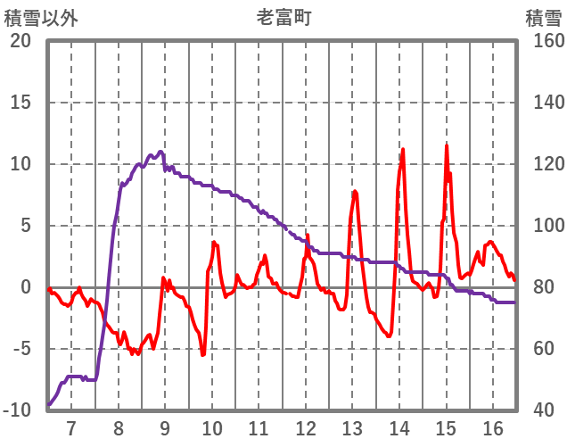 | 日 | 時 | 気温 | 降水 | 風向/風速 | 日照 | 積雪 | 降雪 |