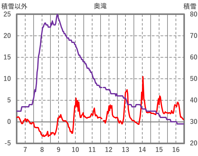 | 日 | 時 | 気温 | 降水 | 風向/風速 | 日照 | 積雪 | 降雪 |