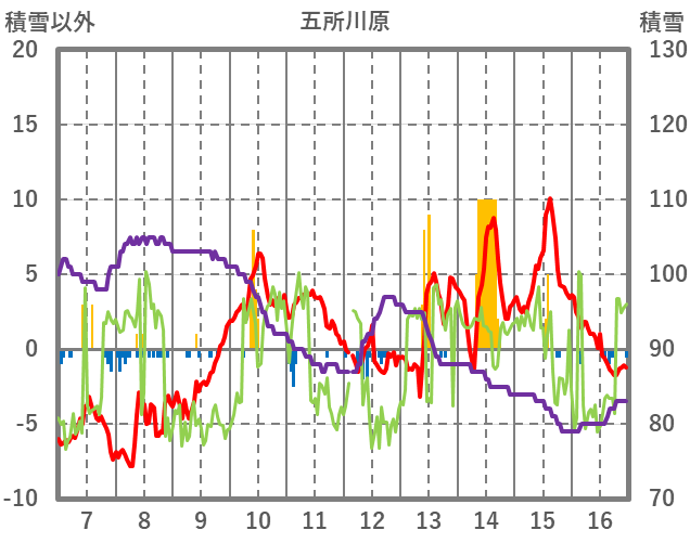 | 日 | 時 | 気温 | 降水 | 風向/風速 | 日照 | 積雪 | 降雪 |