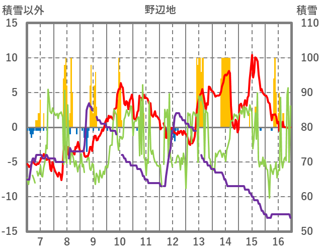 | 日 | 時 | 気温 | 降水 | 風向/風速 | 日照 | 積雪 | 降雪 |