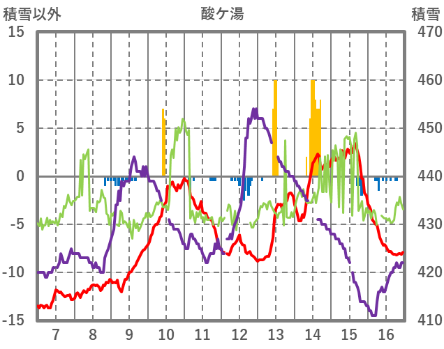 | 日 | 時 | 気温 | 降水 | 風向/風速 | 日照 | 積雪 | 降雪 |