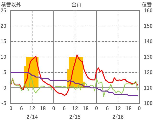 | 日 | 時 | 気温 | 降水 | 風向/風速 | 日照 | 積雪 | 降雪 |