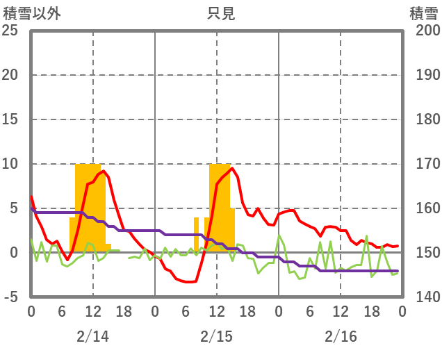 | 日 | 時 | 気温 | 降水 | 風向/風速 | 日照 | 積雪 | 降雪 |