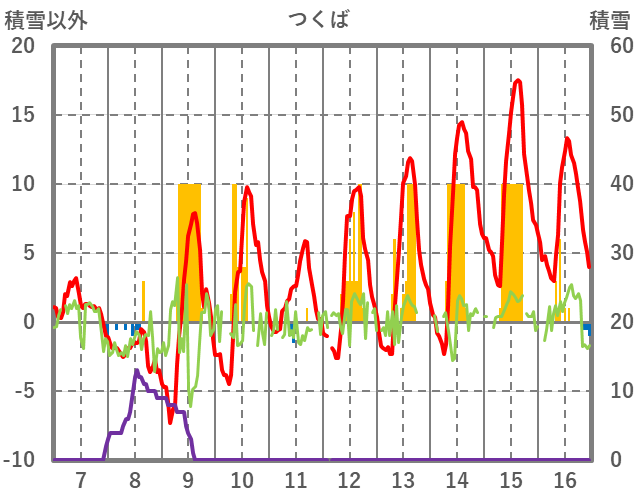 | 日 | 時 | 気温 | 降水 | 風向/風速 | 日照 | 積雪 | 降雪 |