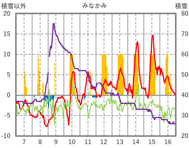 | 日 | 時 | 気温 | 降水 | 風向/風速 | 日照 | 積雪 | 降雪 |