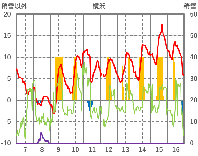 | 日 | 時 | 気温 | 降水 | 風向/風速 | 日照 | 積雪 | 降雪 |