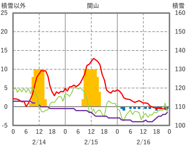 | 日 | 時 | 気温 | 降水 | 風向/風速 | 日照 | 積雪 | 降雪 |