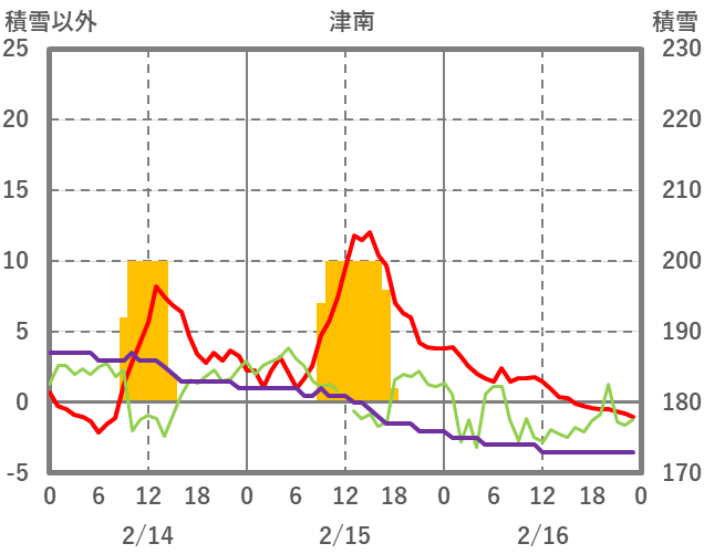 | 日 | 時 | 気温 | 降水 | 風向/風速 | 日照 | 積雪 | 降雪 |