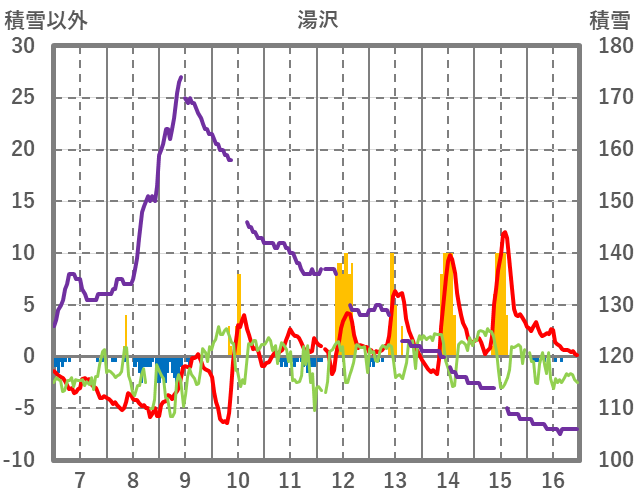 | 日 | 時 | 気温 | 降水 | 風向/風速 | 日照 | 積雪 | 降雪 |