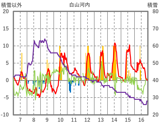 | 日 | 時 | 気温 | 降水 | 風向/風速 | 日照 | 積雪 | 降雪 |