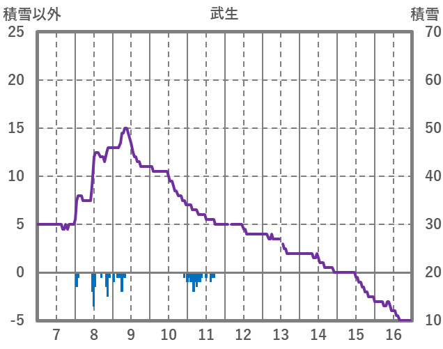 | 日 | 時 | 気温 | 降水 | 風向/風速 | 日照 | 積雪 | 降雪 |
