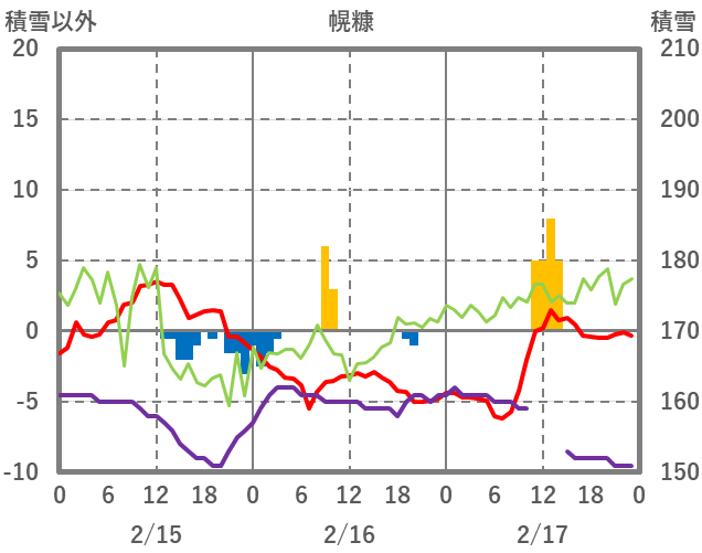 | 日 | 時 | 気温 | 降水 | 風向/風速 | 日照 | 積雪 | 降雪 |