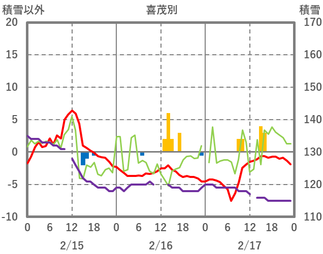 | 日 | 時 | 気温 | 降水 | 風向/風速 | 日照 | 積雪 | 降雪 |