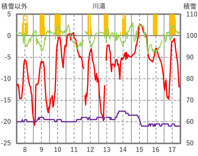 | 日 | 時 | 気温 | 降水 | 風向/風速 | 日照 | 積雪 | 降雪 |