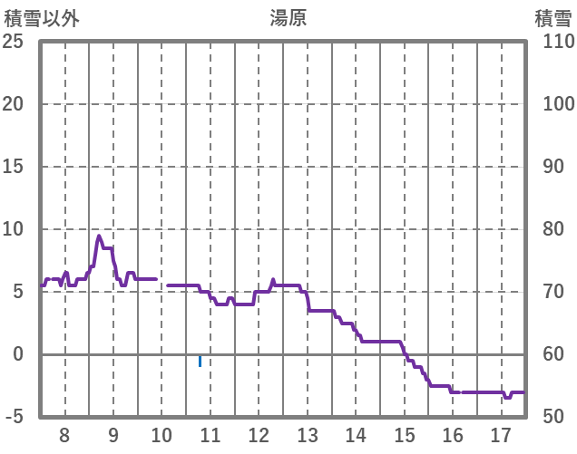 | 日 | 時 | 気温 | 降水 | 風向/風速 | 日照 | 積雪 | 降雪 |
