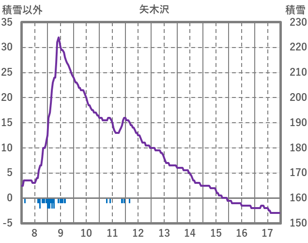 | 日 | 時 | 気温 | 降水 | 風向/風速 | 日照 | 積雪 | 降雪 |