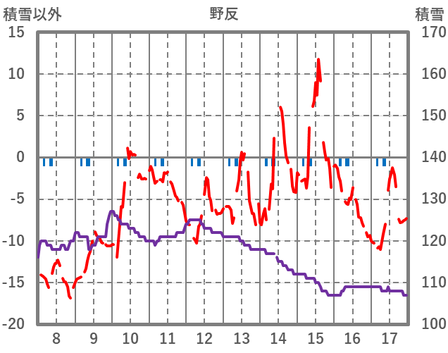 | 日 | 時 | 気温 | 降水 | 風向/風速 | 日照 | 積雪 | 降雪 |