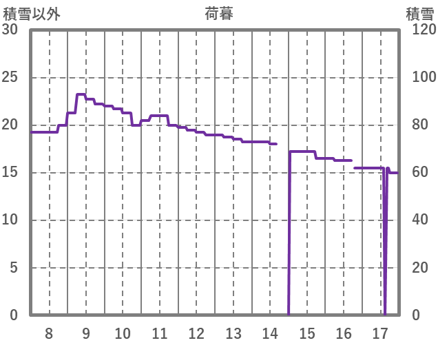 | 日 | 時 | 気温 | 降水 | 風向/風速 | 日照 | 積雪 | 降雪 |