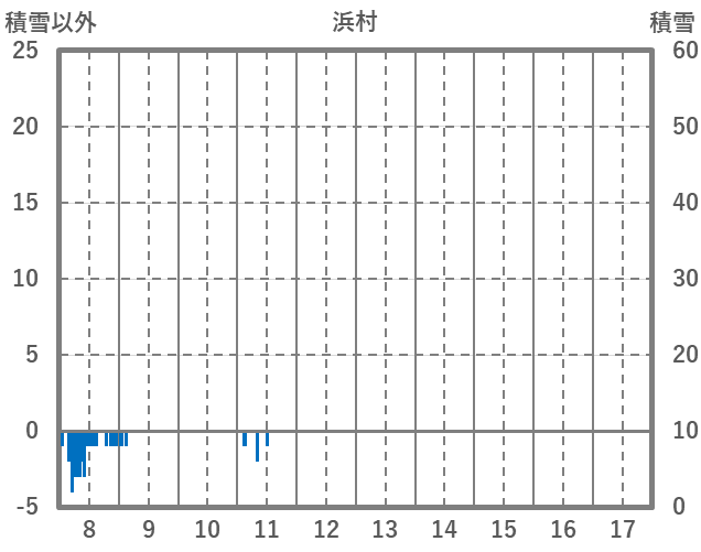 | 日 | 時 | 気温 | 降水 | 風向/風速 | 日照 | 積雪 | 降雪 |