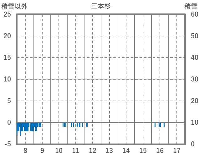 | 日 | 時 | 気温 | 降水 | 風向/風速 | 日照 | 積雪 | 降雪 |