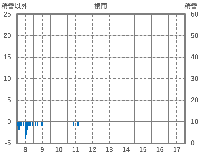 | 日 | 時 | 気温 | 降水 | 風向/風速 | 日照 | 積雪 | 降雪 |