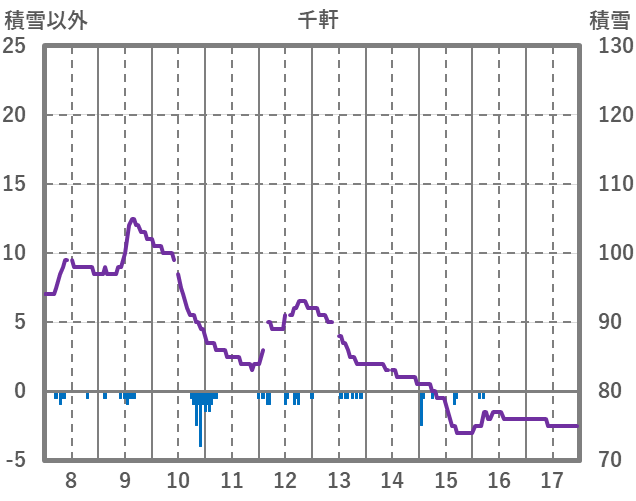 | 日 | 時 | 気温 | 降水 | 風向/風速 | 日照 | 積雪 | 降雪 |