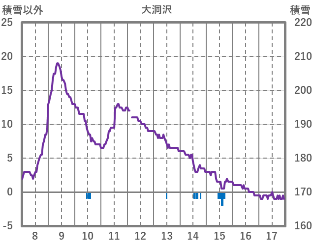 | 日 | 時 | 気温 | 降水 | 風向/風速 | 日照 | 積雪 | 降雪 |