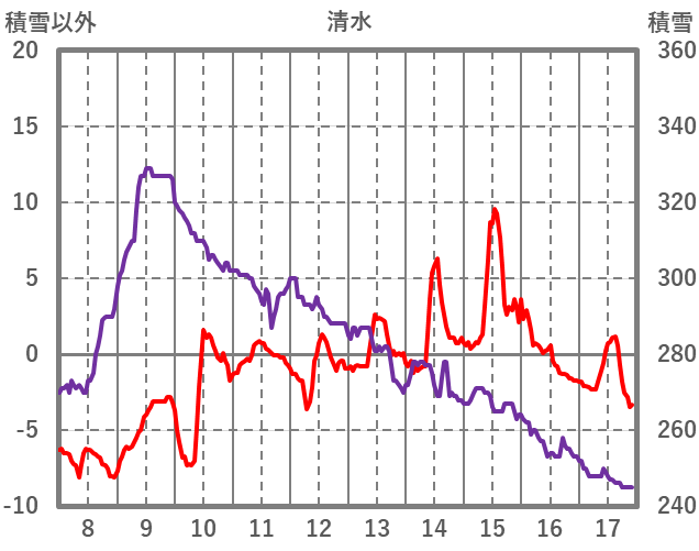 | 日 | 時 | 気温 | 降水 | 風向/風速 | 日照 | 積雪 | 降雪 |