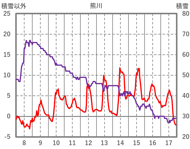 | 日 | 時 | 気温 | 降水 | 風向/風速 | 日照 | 積雪 | 降雪 |